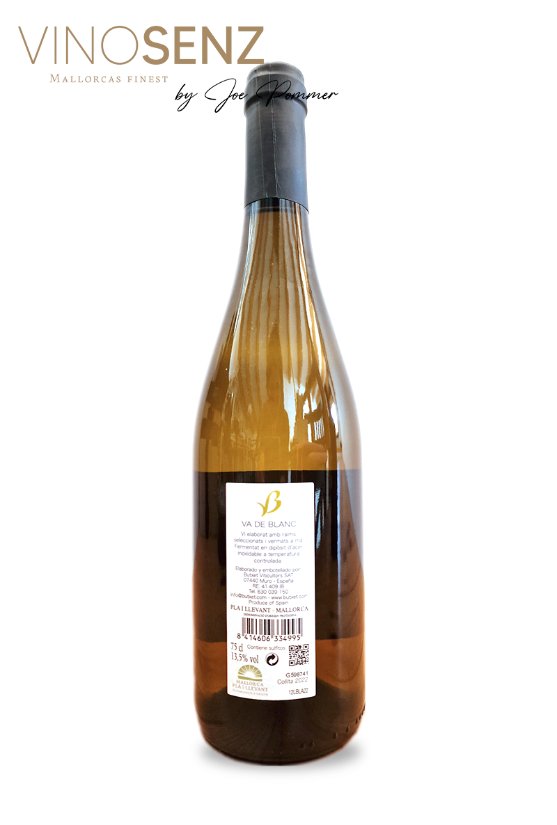 Der VA DE BLANC von der Bodega Butxet ist ein intensiver, sehr fruchtiger Weißwein aus Mallorca, der das mediterrane Lebensgefühl von Sommer, Sonne und Meer verkörpert. Mit seiner klaren Frische und ausdrucksstarken Aromatik ist er ein idealer Wein für leichte, genussvolle Momente.